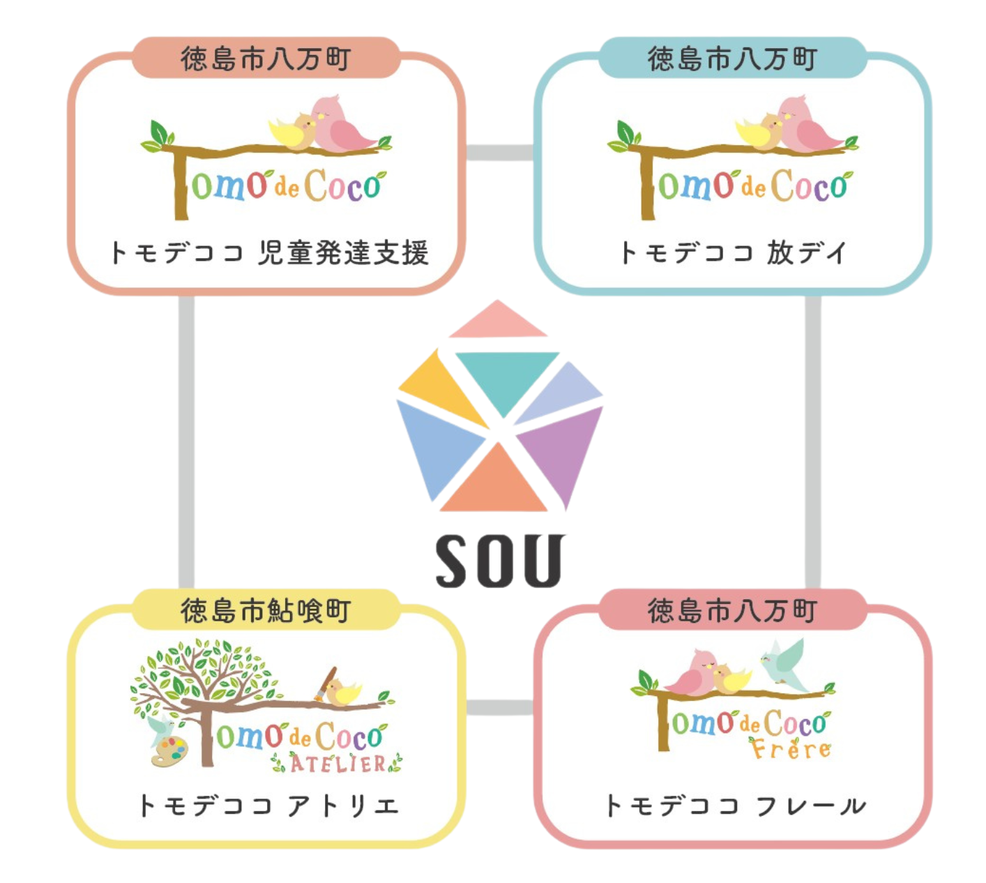 株式会社SOUが運営するトモデココグループは現在4事業所ありますが、令和8年度に板野郡藍住町にも新店舗オープンを予定しています。